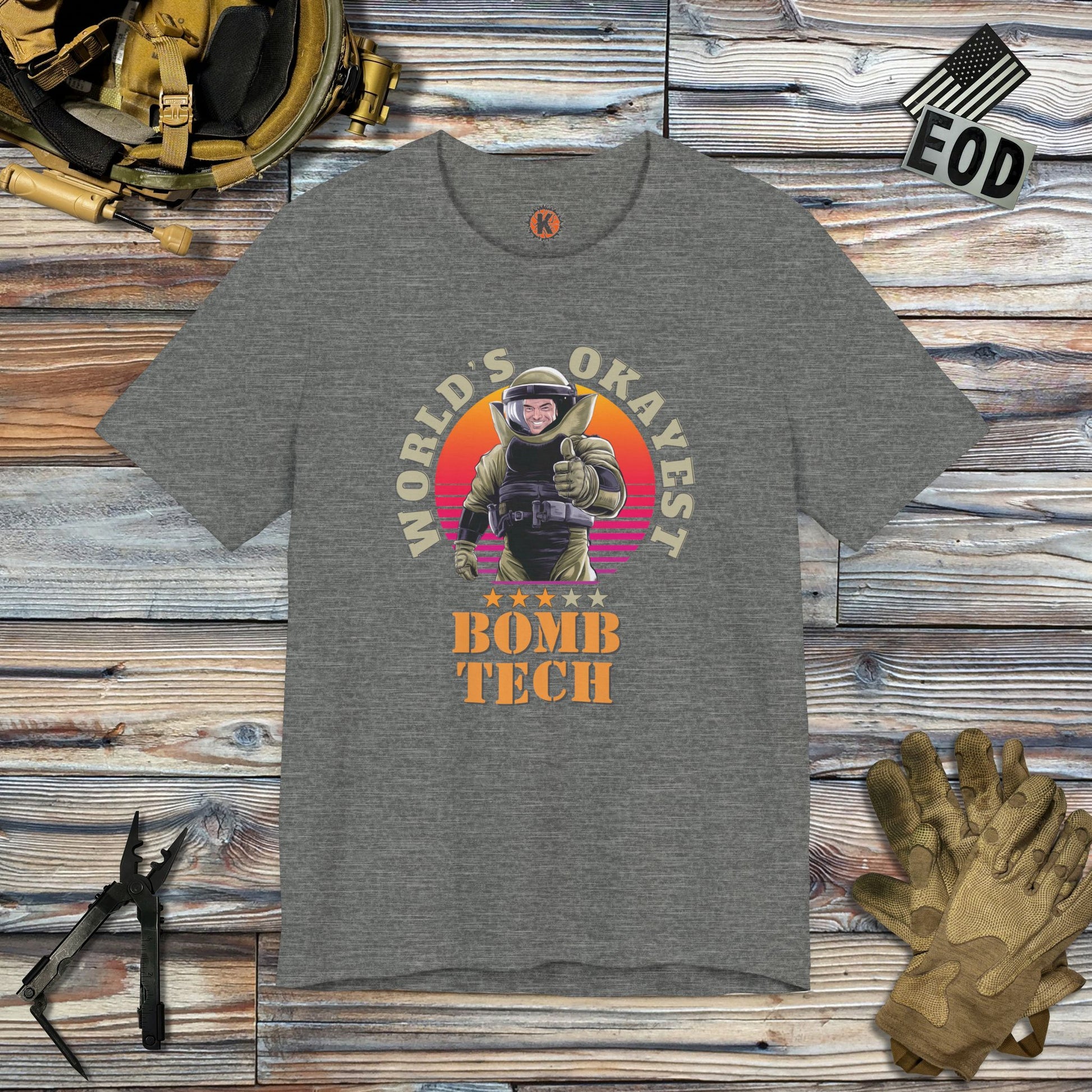 Built for bomb techs, not fashion influencers — but it still fits way better than your issued PT gear. We use Bella+Canvas 3001 blanks because they’re soft where it matters, tough where it counts, and hold up under pressure just like you.
